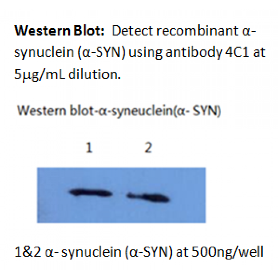 Western Blot: Detect recombinant α- synuclein (α-SYN) using antibody 4C1 at 5μg/mL dilution.