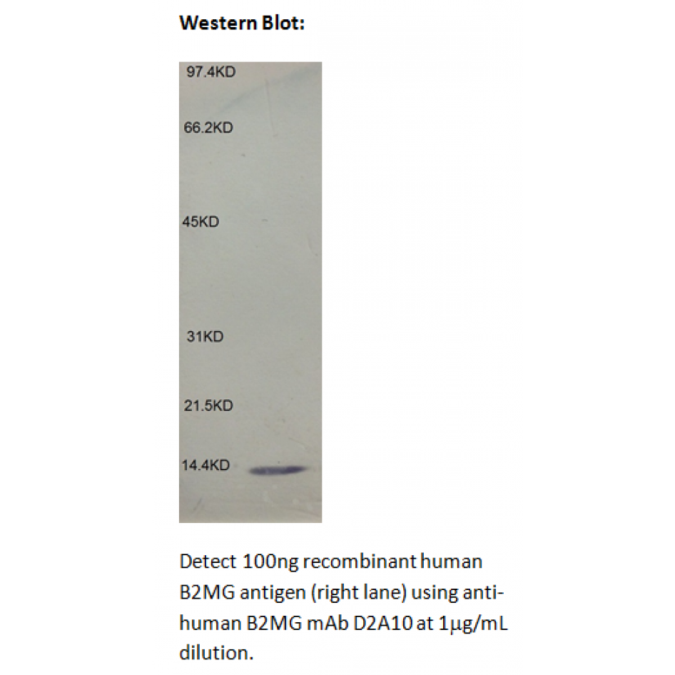 2. Western Blot: Detect recombinant human B2MG antigen (100ng/lane) using anti-human B2MG mAb D2A10 at 1μg/mL dilution.