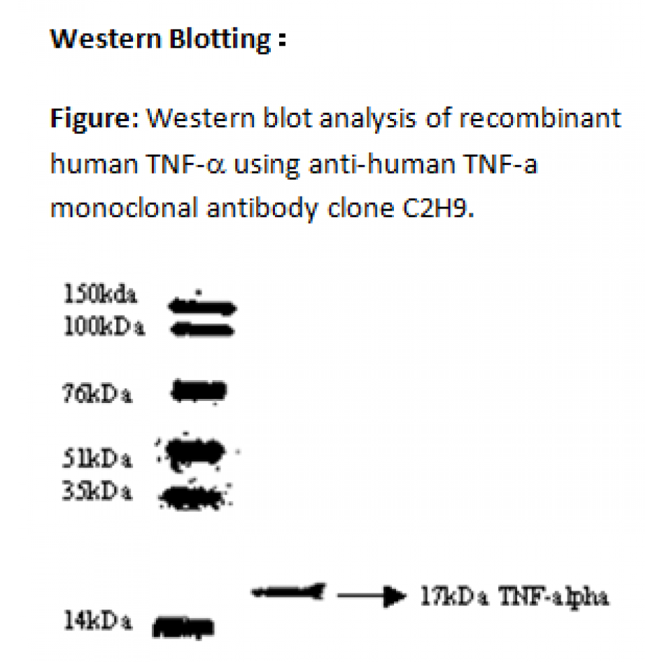 Figure: Western blot analysis of recombinant human TNF-α using anti-human TNF-α monoclonal antibody clone C2H9.