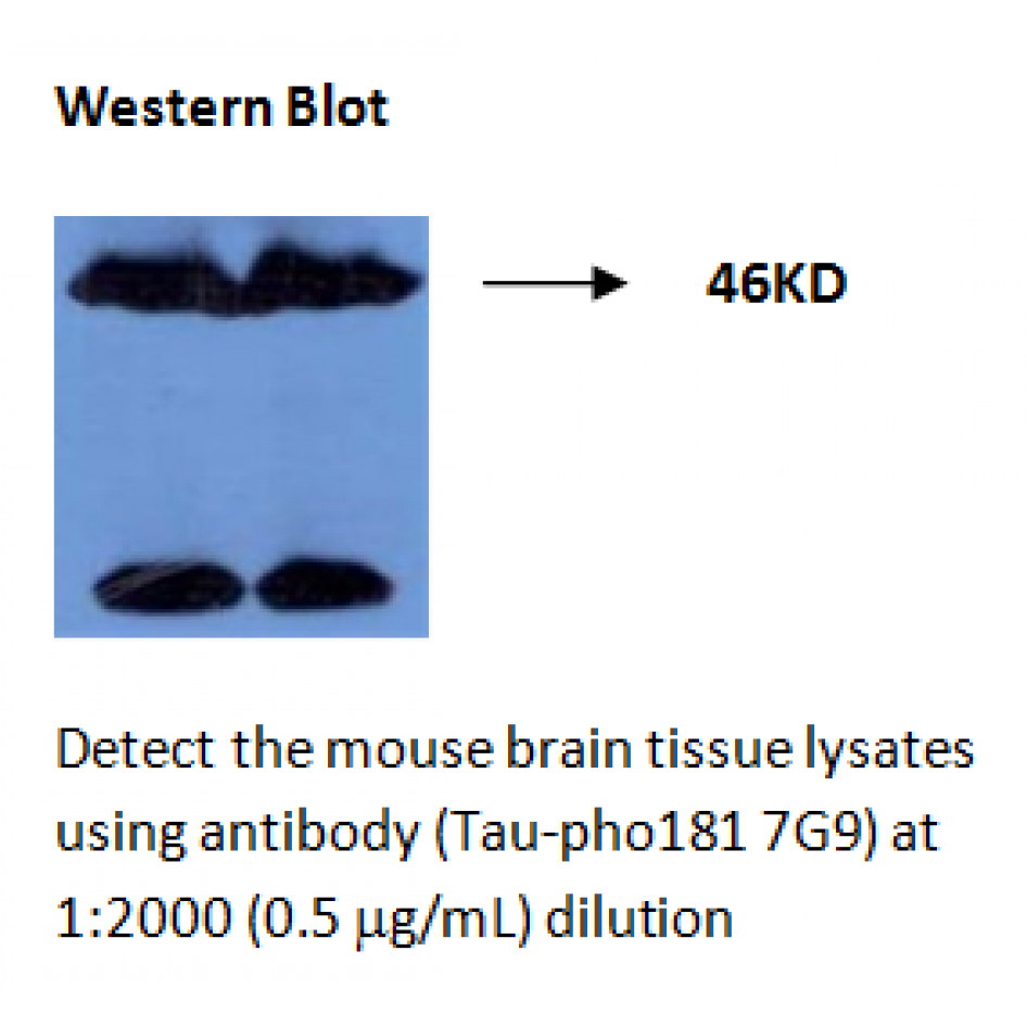 Detect the mouse brain tissue lysates using antibody (Tau-pho181 7G9) at 1:2000 (0.5 μg/mL) dilution.
